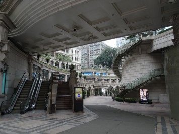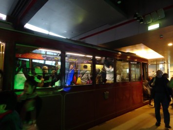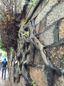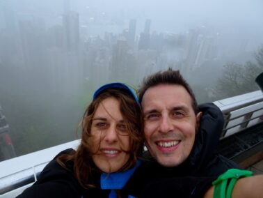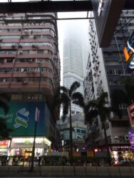 In the afternoon we walked to get the Peak Tram and went up the peak. Ready for the scenic walk, we had once again to give up due to the cold rain and strong winds. We had a sort of view from up there, even if a bit foggy, but we were glad that we got away without having to pay the extra for the scenic terrace since we found out that there is a free scenic view on the building next to it! Little satisfactions for us poor travellers 🙂 after lingering around the peak and the malls for a bit longer, we came down again before getting sucked in by the thick fog. The tram itself is an amazing experience SO STEEP! We learnt from Elaine that only the super rich can afford to live on the peak, and in fact we spotted some houses with a few Lamborghinis and Porches parked outside!