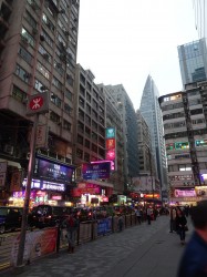 After Bruce tried a couple of (delicious) posh whiskies at 9am in the morning in Hanoi Airport, which we were never going to buy, we set off for Hong Kong with Dragon Airlines. We arrived in Hong Kong (huge airport and very modern) at about 1:30pm – it felt so clean and organised after Vietnam! Once arrived we made a call from the free phones at the airport to let our Airbnb know that we were on our way, we got the luggage and got the airport express train which was very fast and got us in Hong Kong station at about 3pm. We then jumped in a red taxi, all taxis in HK are cheap and the cars look bizarrely very old for such a futuristic city! We arrived at our Airbnb in Gleanely Street which was in a great location and very clean and comfy. Kitchen a bit small and no supplies whatsoever (no sugar, or salt very little cuttlery and plates), but great shower and perfect location which is the most important thing really especially if you are here for a short time. Every single hotel or b&b we looked at was double the price in this area! It also had a very nice roof terrace with a cool view, which obviously we never used as it rained the whole time!
