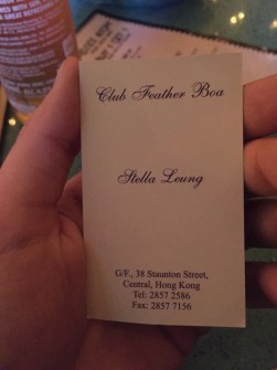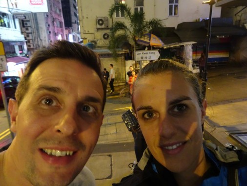 At 7pm we met Elaine, a friend of Hazel’s (Brucey’s lovely younger sister) who has been living here with her husband Rory for more than 12 years. We had dinner at Island Tang in Central which was very nice, with a great retro atmosphere – a bit like going back in the old Hong Kong that we learnt about in the museum during the day! Elaine and Rory were so nice, we had a great time with them and made the most of their knowledge of this fantastic city! After dinner they showed us some of the mid levels, and the elevators where it is much easier to walk around and get to different areas, and we then stopped at a lovely secret bar in Soho called Stella Leung which is not listed anywhere, and is members only on some days. It was really cool, again very vintage and stylish (everything is very stylish in Hong Kong!) and it’s not listed anywhere and it’s impossible to spot as it is in a window with a closed curtain. You’d have no idea there is a bar behind the curtain if you were just passing by! Great cocktails and great atmosphere. And again we had a lovely evening with Rory and Elaine, thanks again for showing us the real Hong Kong and giving us such a warm welcome!