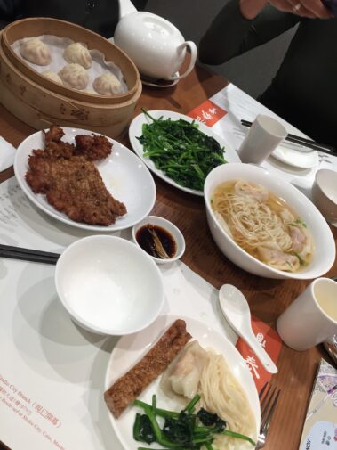 As we disembarked we got stopped by a group of school kids and helped them fill their questionnaire on tourism in Hong Kong and on the shopping habits of tourists. We wanted to visit the avenue of stars but we learnt from a cab driver that it is actually closed for three years for renovations. By then it was lunch time and we walked around Canton road until we found a mall called Silvercord where we knew we would find a place called Din Tai Fung, one michelin star of very fairly priced delicious chinese food. We spent £20 each, but were so happy and satisfied of our meal! We had wontong soup with prawn and pork dim sums, garlic spinach, fried dim sums and normal dim sums, and to end we had an amazing dessert bun with sesame paste which was just unforgettable. Strongly recommend to go here for lunch or dinner, it’s worth every penny!