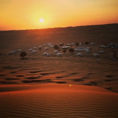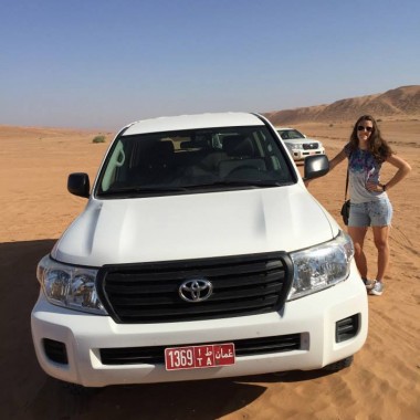 We hired a 4×4 (is a must in those roads) white Toyota (and called it Hugo, as per our usual tradition of calling our car with  the name of a character from the series Lost) and drove to the desert passing through Sur to the Wahiba Sands. Make sure you stop at the Wadis you encounter on the way there, they are magical oasis, Wadi Bhani Kalid was our favourite. The best story of the holiday in Oman is that when we got out of the road and onto the sand, the car started shaking like crazy even if I was driving very slowly and carefully. We had 4Km only to get to our accommodation, but we were going at the lowest possible pace and the sounds weren’t promising! Luckily some locals passed by, and kindly informed us that we had to deflate our tyres to drive on the sand. We came back and stopped at a garage and despite their total lack of English they perfectly understood our needs and did it for free. We arrived just about on time for the most beautiful sunset over the desert dunes, and spent the night in the stunning Desert Nights camp – a great desert experience including a short camel ride!